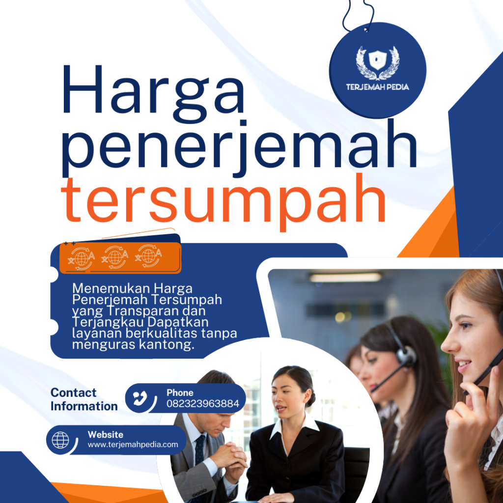 Jika Anda mencari penerjemah tersumpah profesional yang dapat diandalkan, Anda bisa menghubungi Jasa Terjemah Pedia melalui nomor 0823 2396 3884. Mereka menyediakan berbagai layanan penerjemahan, termasuk penerjemahan dokumen hukum, akademik, dan teknis, dengan harga yang kompetitif dan layanan yang dapat diandalkan.